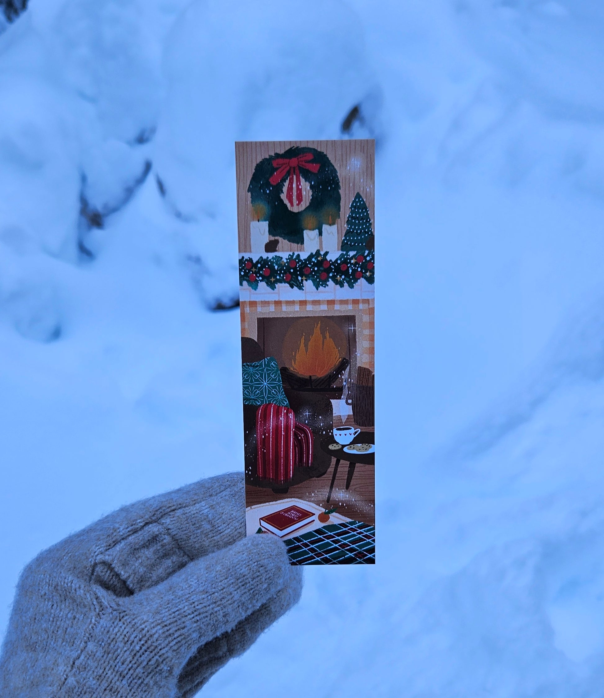 Évadez-vous dans l'atmosphère réconfortante et cosy d'un cottage avec ce marque-pages illustrant la vie paisible d'un salon en hiver ❄️🌲
